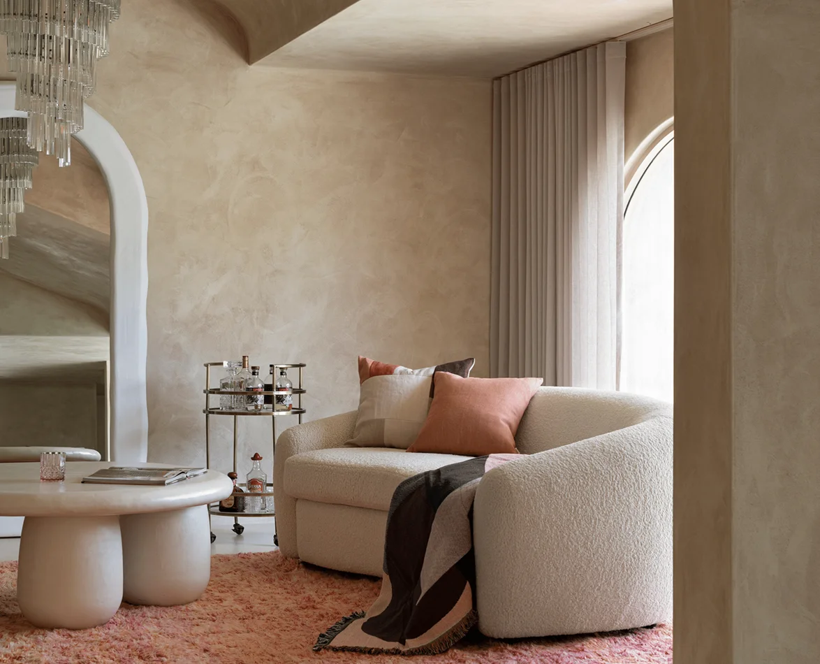 Detalės, išdėstytos aplink sofą, papildo ir sukuria nuostabų pagrindinį kambario tašką. Nuotrauka: HOMES TO LOVE
