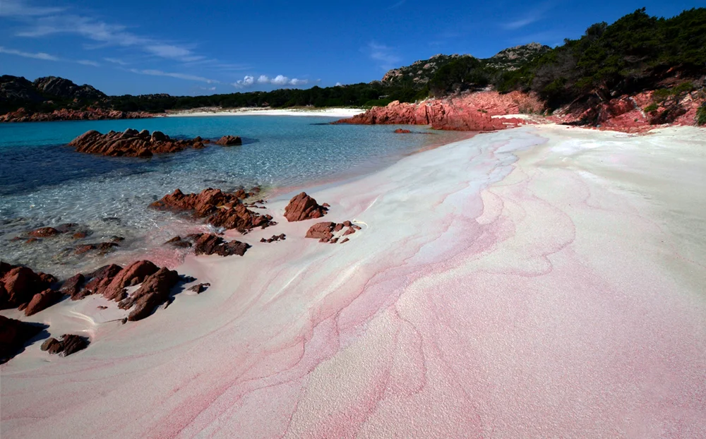 Ryškų rožinį atspalvį smėlis įgauna dėl seklumose gyvenančių mikroorganizmų kriauklių, kurias sutraiško srovės ir sumaišo su smėliu. Nuotrauka: pinkmagazineitalia.it