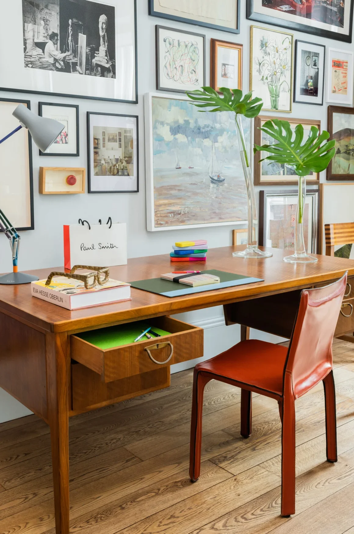 Serui Polui Smitui būdingas linksmumo ir šmaikštumo jausmas perteikiamas ne tik meno kūriniuose, bet ir žaismingose dizaino detalėse. Puikūs šios žaismingos estetikos pavyzdžiai: banano formos durų rankenos ir židinio grotelės iš ketaus, kuriose kaip atramos išradingai panaudoti du šunys – sukurti pagal Homerą, Smito afganų kurtų veislės šunį iš 1970-ųjų ir jo pirmosios parduotuvės Notingame „vadybininką“. Smito baldų kolekcija „Everyday Life“ (liet. Kasdienybė), sukurta 2022 m. bendradarbiaujant su italų prekės ženklu „de Padova“, taip pat suranda savo vietą apartamentuose. Šiuose gaminiuose susijungia Smito ekspresyvumas ir itališko stiliaus braižas. Tamsaus uosio spalvos „Everyday Life“ sofa ir fotelis pasižymi kontrastingomis siūlėmis, primenančiomis siuvimo techniką, o kavos staliukas su stalviršiu, ant kurio išraižyta horizontali juosta, iš kalkakmenio. Ant ryškiaspalvių pagalvėlių iš „Paul Smith Home Collection“ (liet. Polo Smito namų kolekcija) puikuojasi kultiniai dizainerio dryžiai. Svečiams suteikiama galimybė „apsipirkti apartamentuose“ – jei jie norėtų kurio nors iš eksponuojamų gaminių ir (arba) meno kūrinių, jiems pateikiamas išsamus gaminių katalogas.