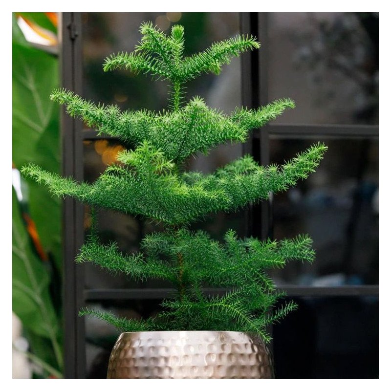 Araukarija – išskirtinis ir elegantiškas augalas, dažnai vadinamas kambarine eglute, kuris interjerui suteikia subtilios struktūros ir ramybės pojūtį. Simetriškos, sluoksniuotos šakos kuria tvarkingą, architektūrišką formą, todėl araukarija ypač tinka minimalistiniuose, skandinaviškuose ar net klasikiniuose interjeruose. Ji gali tapti švelniu akcentu tiek svetainėje, tiek darbo kambaryje, o šventiniu laikotarpiu net pakeisti tradicinę eglę. Araukarija mėgsta šviesą, tačiau geriausiai jaučiasi apsaugota nuo tiesioginių saulės spindulių. Priežiūra nėra sudėtinga – svarbu palaikyti tolygiai drėgną dirvą, neperlaistyti ir vengti sausų, karštų patalpų oro. Taip pat ji nemėgsta dažnų vietos keitimų, todėl pasirinkus tinkamą vietą, verta leisti augalui ramiai augti ir prisitaikyti.